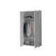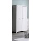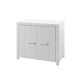 Kommoden har to låger, mens garderobeskabet giver praktisk opbevaring: bag venstre låge findes et hængeafsnit og 1 hylde, og bag højre låge er der 4 hylder. Der er dermed rigeligt plads til tøj, tekstiler og hverdagens småting. Det hvide, lakerede look i en kombination af massiv fyr og MDF matcher nemt enhver indretning.