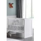 Skab et roligt og indbydende børneværelse med Erik 3-dels babyværelse i klassisk hvid. Sættet består af en tremmeseng 60 × 120 cm, en kommode med to låger og et klædeskab med to låger – alt sammen i en enkel, landlig stil, der giver lethed og rummelighed i rummet. Sengen leveres med lamelbund, som kan justeres i 3 højder, så den følger barnets udvikling fra nyfødt. De lodrette riller på sengens gavle fuldender det tidløse udtryk.