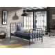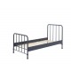 This BRONXX bed (90 x 200 cm) in the color denim blue is made of metal. It features an industrial appearance thanks to the matte blue lacquered finish. The robust metal frame and 15 cm screwed bed sides ensure durability and stability. The slatted base is included. A solid foundation for a good night's sleep!