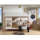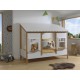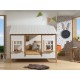 Gør børneværelset hyggeligt og indbydende med denne husformede seng i størrelsen 90 x 200 cm. Den varme kombination af naturligt fyrretræ og friske, hvide paneler giver et skandinavisk udtryk, som passer ind i de fleste hjem. De legende vinduer med små karme gør sengen til et oplagt legehjørne i dagtimerne – perfekt til små eventyrere, der vil skabe deres egen hule.