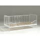 Alice-sengen i størrelsen 90 x 200 cm kombinerer et vintage og romantisk udtryk med praktisk funktion. Den hvide metalseng har forhøjede sengeheste på tre sider, som giver en tryg ramme – og gør den lige så velegnet som hyggelig daybed i stuen eller på værelset. Den åbne gavl gør det nemt at rede op og pynte med puder og tæpper.