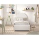 Moon er en polstret seng med opbevaring i størrelsen 90 x 200 cm, der giver børne- og ungdomsværelset et varmt, romantisk udtryk. Den bløde bouclé i hvid og den afrundede sengegavl skaber en rolig, hyggelig atmosfære, hvor det er nemt at slappe af. Under sengen får du ekstra plads til sengetøj og sæsonens ting, så værelset holder sig ryddeligt.