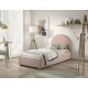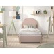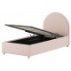 Moon er en polstret seng med opbevaring i størrelsen 90 x 200 cm, der kombinerer praktisk funktion med blød komfort. Den lyserød bouclé giver et varmt og hyggeligt udtryk, mens den afrundede gavl skaber en rolig ramme i børne- eller gæsteværelset. Under madrassen findes ekstra opbevaringsplads til sengetøj og tekstiler. Lamelbunden og madrassen løftes nemt ved hjælp af et bånd.