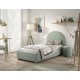 Moon er en elegant seng med opbevaring i størrelsen 90 × 200 cm, polstret i blød bouclé i en rolig grøn nuance. Den runde sengegavl og de bløde former giver soveværelset et varmt, romantisk udtryk, mens opbevaringsrummet under madrassen hjælper dig med at holde rummet ryddeligt. Lamelbunden og madrassen kan løftes nemt med et bånd, så du hurtigt får adgang til pladsen under sengen.