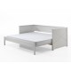Scott er en smart udtræksseng i hvid, der fungerer som både enkeltseng og dobbeltseng. I hverdagen står den som en pladsbesparende daybed, og når der er brug for ekstra soveplads, trækkes den let ud fra 90 x 200 cm til 180 x 200 cm. Det rene, skandinaviske udtryk passer ind i mange hjem og gør sengen oplagt til børneværelse, gæsteværelse eller stuen.