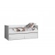 Robin er en pladsbesparende køjeseng/sofaseng til børne- og ungdomsværelset, der giver ekstra soveplads på et øjeblik. Den hvide overflade passer ind i de fleste indretninger, og de fine vertikale riller giver et tidløst, traditionelt udtryk. Under sengen finder du en praktisk udtræksseng med to opbevaringsskuffer, så dyner, puder og legetøj hurtigt kan gemmes væk. Skufferne har soft-close for en rolig og behagelig hverdag.