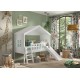 Halvhøj seng med rutsjebane 90 x 200 cm – Housebed, hvid