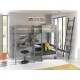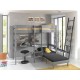 Pino loftseng i elegant grå giver masser af funktion på lidt plads. Øverst er der soveplads til en 90 × 200 cm madras, mens området under sengen kombinerer skrivebord og sovesofa til lektier, hygge og overnatning. Trappen er placeret midt på sengen, og sofaens og bordets placering kan byttes, så indretningen nemt tilpasses værelset.