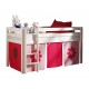 Halvhøj seng til børn Pino – hvid med Pink Flower gardin