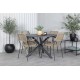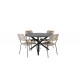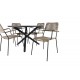 En jordnær og tidløs Loungesæt - Havemøbelsæt til terrassen! Vores populære Lindos spisebordsstole i lækker lattefarvet reb med stilfulde, smalle ben og integrerede armlæn i sort stål er en ægte designikon. Her sammen med det smagfulde Alma spisebord med dekorative krydsben i sort aluminium. Et rundt Loungesæt - Havemøbelsæt er perfekt til dig, der ønsker at skabe en hyggelig og familiær atmosfære i dit udendørsrum eller på altanen - så inviter familie og venner og nyd dejlige måltider sammen!