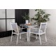 Inviter til hyggelige stunder med vores Break Rundt Loungesæt - Havemøbelsæt! Perfekt til to personer, dette sæt garanterer forlængede, behagelige øjeblikke denne sommer. Break-bordet har en rund bordplade i grå Aintwood og en klassisk hvid aluminiumsramme. Bordets diameter er 90 cm. Sammen med moderne spisebordsstole fra Copacabana-serien, der er både stilfulde og praktiske. Stolene er stabelbare med sæde i tekstil og ramme i aluminium. Skab en charmerende plads til alle sommerens anledninger!