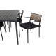 En harmonisk Loungesæt - Havemøbelsæt til sommermåltider! Paola spisebordsstol er en perfekt blanding af dekorativt træ og stilfuld sort farve. De fine kontraster mellem farverne skaber en harmonisk følelse i udendørsområdet! Her i perfekt kombination med vores rektangulære spisebord Break i sort aluminium og bordplade i aintwood. Simpelthen en gennemtænkt Loungesæt - Havemøbelsæt, som du nemt kan skabe charmerende udendørsmiljøer med!