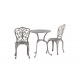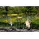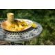 En klassisk cafébord i et charmerende og nostalgisk design. Dette elegante bord fra Nandin-serien har en rund top med mønster og tre snoede ben i aluminium. Dæk bordet til kaffe i sommer og nyd afslappende øjeblikke i solen!