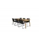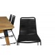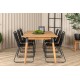 Et flot træbord går aldrig af mode! Her er spisebordet Julian kombineret i akacietræ sammen med stilfulde spisebordsstole fra Lindos-serien. Stolene er lavet af sort reb, der skaber et kunstnerisk blikfang. Nyd en solrig frokost eller en varm sommeraften i denne komfortable Loungesæt - Havemøbelsætsgruppe!