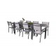 Marbella Loungesæt - Havemøbelsæt sammen med Copacabana spisestole giver dig en Loungesæt - Havemøbelsæt, der passer perfekt til enhver terrasse eller gårdhave. Bordet er udtrækkeligt og giver mulighed for større middagsselskaber! Med en robust konstruktion af aluminium og tekstilene, samt et stilfuldt design i sort og grå, er dette sæt både funktionelt og æstetisk tiltalende. Let at rengøre og vedligeholde, hvilket gør det ideelt til udendørs brug hele året rundt.