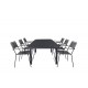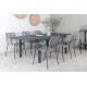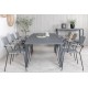 Klassisk madgruppe, der passer ind i de fleste husholdninger! Spisebordet Marbella sammen med stole i serien Lindos skaber en hyggelig og moderne atmosfære i udendørsområdet eller på terrassen. Bordet er udtrækkeligt, hvilket gør det ideelt til både små og store sammenkomster. Fremstillet af aluminium og polyester reb, dette sæt er både let og holdbart. Sort og grå farver giver et stilrent look.