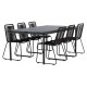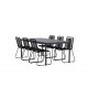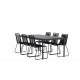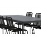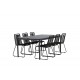 Inviter til mange sociale begivenheder i fremtiden! Modena er vores populære spisebord i lige nordiske former, der giver plads til mange. Bordet har en rektangulær bordplade i sort aluminium og cylindriske ben i minimalistisk design. Her i en modebevidst kombination med vores lækre spisebordsstole Lindos. Stolene er stabelbare for praktisk opbevaring og lavet af holdbart reb. Sid komfortabelt og hyggeligt i et dejligt Loungesæt - Havemøbelsæt!