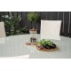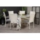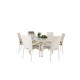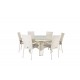 Volta Rundt Loungesæt - Havemøbelsæt kombinerer spisebordet Volta med vores stabelbare Anna spisebordsstole i en elegant, hvid konstrueret konstruktion. Dette stilfulde og holdbare runde Loungesæt - Havemøbelsæt inviterer til mange hyggelige middage! Aluminium, glas, rattan, stål og flet gør dette sæt både robust og attraktivt. Perfekt til udendørs brug, da materialet er UV-resistent og kan modstå vind og vejr.