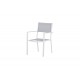 Copacabana i sit industrielle og stilfulde design gør sig fremragende sammen med andre udendørsmøbler. Dens hvide konstruktion i aluminium og grå sæde i Textilene skaber en dejlig blikfang og giver dig en praktisk spisestol, der holder over tid. Inviter til mange sociale øjeblikke denne sommer! Stolen er stabelbar.