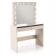 HOLLYWOOD Sminkebord med spejl i Beige farve er det perfekte valg til dit soveværelset. Moderne design kombineret med funktionalitet gør dette bord ideelt til både at smikne sig og studier. Bordpladen er lavet af lamineret spånplade, der sikrer holdbarhed og let vedligeholdelse. Med LED-lys integreret i designet får du en stilfuld og praktisk løsning, der lyser dit arbejdsområde op. Med dimensionerne 94/43/140 cm passer dette Sminkebord perfekt ind i de fleste rum, og dets Beige finish tilføjer et elegant touch til enhver indretning.