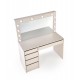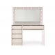 HOLLYWOOD Sminkebord i hvid er den ideelle løsning til dit soveværelse . Med dimensionerne 120/55/140 cm tilbyder dette bord rigelig plads til at organisere dine arbejdsredskaber. Det er fremstillet af lamineret spånplade og inkluderer LED-lys, der skaber en moderne og stilfuld atmosfære. Dette Sminkebord kombinerer funktionalitet og æstetik, hvilket gør det til et perfekt valg for enhver, der ønsker at forbedre deres soveværelse.