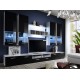 Væghængte skabe: Baltimore glasdør, med hylder og et glasfront med LED-lys,