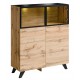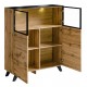 Den komplette løsning består af høj vitrine, lav vitrine, TV-bord og væghylde – alt sammen i et stilrent og harmonisk design. Alle låger åbnes nemt med push-click system, og vitrinernes glashylder fremhæves af integreret LED-belysning, som skaber en varm og hyggelig atmosfære i stuen.