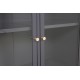 Bakal Skab, i en moderne industrielt design, er lavet af pulverlakeret lysegrå stål med to døre i glas. Rammen består af pulverlakeret lysegrå stål og to reliefoverflader. Dørene har messingfarvede knopper. Hele skabet hviler på en åben ramme i lysegrå pulverlakeret stål. Dimensioner: Længde: 85 cm, Bredde: 40 cm, Højde: 85 cm. Let montage er påkrævet.