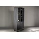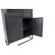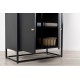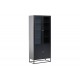 Bakal Skab, i moderne industrielt design, lavet af pulverlakeret sort stål. Øverste del med to høje glasdøre med ramme af pulverlakeret sort stål og fire reliefoverflader. Nederste del med to nedre døre med skjult opbevaring i pulverlakeret sort stål med to reliefoverflader. Alle døre har messingfarvede knopper. Hele skabet hviler på en åben ramme i sort pulverlakeret stål. Dimensioner: Længde: 80 cm, bredde: 40,5 cm, højde: 190 cm. Lettere samling kræves.