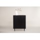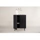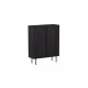 Oplev en stilfuld og smart opbevaringsløsning til dit hjem med Bjorkon skabet! Dette højreliefskab fra Bjorkon-serien fås i forskellige farver og størrelser og er hurtigt blevet en trendfavorit med sit elegante design. Skabet har to ribbede døre og tre hylder til skjult opbevaring. Fremstillet af sort finer og løftet af smalle ben i sort stål. Anvend det som et sidebord med smukke dekorationer og lysestager eller som et skjult udstillingsskab - kun fantasien sætter grænser!