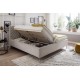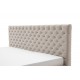 Bettkastenbett (sengeramme med opbevaring) – 160x200 cm med Chesterfield-polstring i Riviera 21 beige.