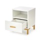 Opgrader dit soveværelse med det elegante SILVIA natbord i klassisk hvid og guld. Dette stilfulde møbel er fremstillet af laminatspånplade og polypropylen, som sikrer både holdbarhed og et luksuriøst udseende. Med dimensionerne 40/40/52 cm passer det perfekt ved siden af din seng og giver rigelig opbevaringsplads til dine nødvendigheder. SILVIA natbord kombinerer funktionalitet og æstetik, hvilket gør det til det ideelle valg for dig, der ønsker at tilføje et strejf af elegance til dit soveværelse.