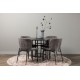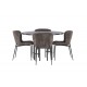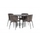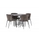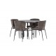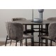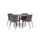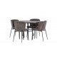 Et Spisebordssæt der opfylder alle dine ønsker! Vores runde spisebord København har en smuk brunfarvet bordplade i MDF med finer og en dekorativ, cylinderformet base i sort metal. Her sammen med de modebevidste spisebordsstole fra Modesto-serien. Stolen er fuldt polstret i gråt plysstof med stilfulde, smalle ben i sort metal. Den let rundede ryg og polstrede sædehynde giver ekstra komfort og forlænger hyggelige måltider omkring spisebordet. Bordets dimensioner: 115 cm. Det bliver ikke bedre end dette!