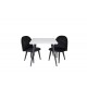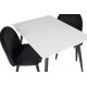 Dette moderne Spisebordssæt til børn er perfekt til deres egen lille spiseplads. Spisebordet fra Plaza-serien kombineres med de bløde stole fra Velvet-serien, hvilket skaber en hyggelig og stilfuld spiseoplevelse for de små. Bordpladen er lavet af MDF og kommer i en elegant hvid farve, mens stolene er beklædt med sort velour for maksimal komfort.