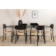 Nyd et lækkert og moderne Spisebordssæt med vores populære Uno spisebord kombineret med de stilfulde Polly spisestole. Bordet har en topplade i sort MDF med finer og sorte metalben - en klassisk rektangulær spisebord med let afrundede hjørner. Bordets dimensioner: Længde: 200 cm, Bredde: 90 cm, Højde: 74 cm. Sættet inkluderer også 6 Polly spisestole med sorte metalben og sæder i naturfarvet reb. Stolens dimensioner: Højde: 88 cm, Sædehøjde: 47 cm, Bredde: 42 cm, Dybde: 55 cm. Lad hjemmets hjerte præges af dit nye iøjnefaldende Spisebordssæt.