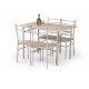 Oplev moderne elegance med FAUST sæt + 4 Spisebordsstole i den stilfulde farve sonoma eg. Dette sæt kombinerer holdbarhed og æstetik med en bordplade lavet af lamineret MDF og et stel af pulverlakeret stål. Bordets dimensioner er 110/70/75 cm, mens Spisebordsstolene måler 36/38/84 cm, hvilket gør det ideelt til både små og store spisestuer. Med sin robuste konstruktion og elegante finish er dette sæt designet til at give din spisestue et sofistikeret touch.