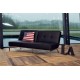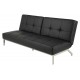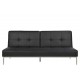 Sort sovesofa i lækkert stilrent design. Denne smarte og komfortable sovesofa er betrukket med slidstærkt tekstillæder. Benene er udført i metal krom. Med denne kvalitetssofa får du et moderne udtryk i stuen eller værelset.