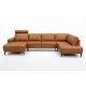 Denne hjørnesofa med chaiselong er en skønhed med sin bløde og afrundede form og de flotte benmuligheder, der giver en luksuriøs stil til enhver stue. Sofaen er tilgængelig i flere farver, der passer til enhver smag og indretning.