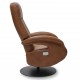 Oplev komfort i topklasse med Bull Electric Recliner – en elegant lænestol betrukket med 100% Cognac ægte læder. Sæde og ryg er polstret med højdensitetsskum (42 kg/m³) for fast og støttende komfort. Med et enkelt tryk lægger stolen sig blødt tilbage fra 85° til 160°, mens fodstøtten automatisk følger med. Det justerbare nakkestøtte sikrer optimal støtte, og den drejelige konstruktion på en sort metal-centralsokkel gør det let at vende sig i rummet.