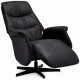 Delta Recliner i sort læder er en elegant og komfortabel lænestol med manuelle funktioner. Den er betrukket med en kombination af ægte læder og PVC for et eksklusivt udtryk, men til en overkommelig pris. Med sin drejefunktion, justerbare nakkestøtte og integreret fodskammel er denne stol ideel til afslapning i hjemmet.